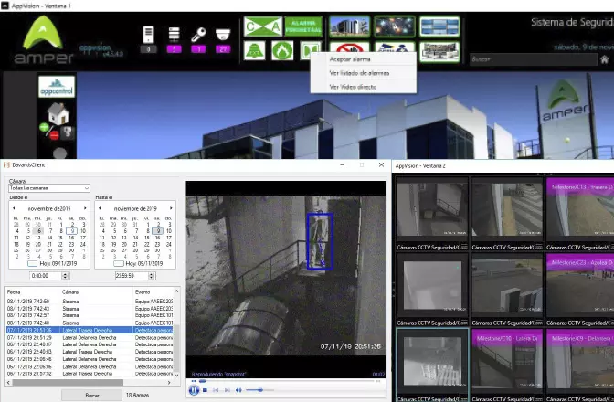 The system detects unauthorised access by analysing video captured by the set of cameras installed around the parameter of the Amper corporate building, showing the alarms generated in the AppVision Security platform. This is vital, necessary information for the security staff at the Control Centre.