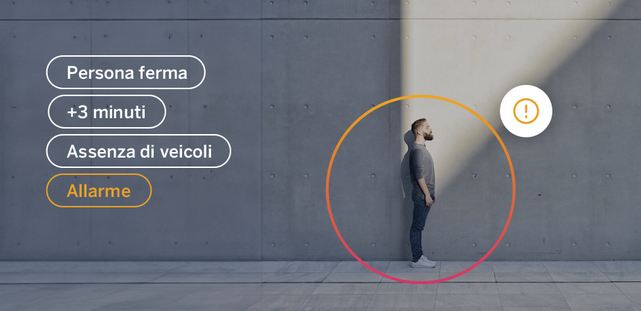 In questa zona, invece, avremo un avviso con la seguente combinazione: persona ferma da più di 3 minuti + assenza di veicoli